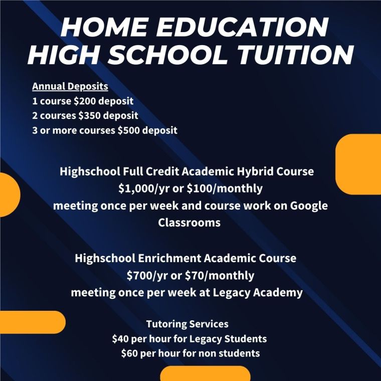 Legacy Home Education offers classes and support for home education students. This allows home education students the opportunity to participate in academic or elective courses through Legacy Academy in an environment that is supportive of the home education philosophy.